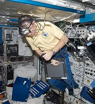- ↑ Reschke MF, Krnavek JM, Somers JT, et al. (2007). A brief history of space flight with a comprehensive compendium of vestibular and sensorimotor research conducted across the various flight programs. Houston: NASA Johnson Space Center.