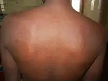 The most common side effect of nevirapine is the development of mild or moderate rash (13%).[23][24] Severe or life-threatening skin reactions have been observed in 1.5% of patients, including Stevens–Johnson syndrome, toxic epidermal necrolysis and hypersensitivity.[23]
