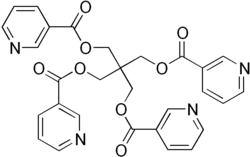 Niceritrol is a niacin derivative used as a hypolipidemic agent. It is an ester of pentaerythritol and nicotinic acid, has general properties similar to those of nicotinic acid (Nicotinamide), to which it is slowly hydrolysed. Niceritrol has been used as a lipid regulating drug in hyperlipidaemias and as a vasodilator in the treatment of peripheral vascular disease.[1][2]