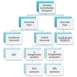 - ↑ Gotti, C.; Fornasari, D.; Clementi, F. (1997), "Human Neuronal Nicotinc Receptors", Progress in Neurobiology, 53 (2): 199–237, doi:10.1016/S0301-0082(97)00034-8, PMID 9364611, S2CID 10421687