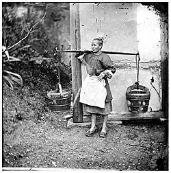 At least as early as the Western Han dynasty, there were mentions of using human feces and urine as fertilizers in Fan Shengzhi shu (The book of Fan Shengzhi on agriculture), but it did not become a common practice until the Song dynasty, along with health warnings when using them.[5] The term is known, or even infamous, among the generations that were born in parts of China or Chinatowns (depending on the development of the infrastructure) before 1960. Post-World War II Chinatown, Singapore, before the independence of Singapore, utilized night-soil collection as a primary means of waste disposal, especially as much of the infrastructure was damaged and took a long time to rebuild following the Battle of Singapore and subsequent Japanese occupation. Following the development of the economy and the standard of living after independence, the night soil system in Singapore is now an anecdote from the time of colonial rule when new systems developed.