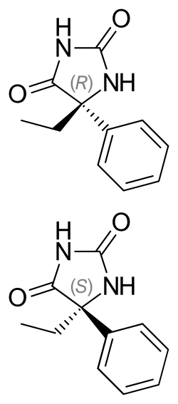 - ↑ Küpfer A, Patwardhan R, Ward S, Schenker S, Preisig R, Branch RA (July 1984). "Stereoselective metabolism and pharmacogenetic control of 5-phenyl-5-ethylhydantoin (nirvanol) in humans". The Journal of Pharmacology and Experimental Therapeutics. 230 (1): 28–33. PMID 6747829.