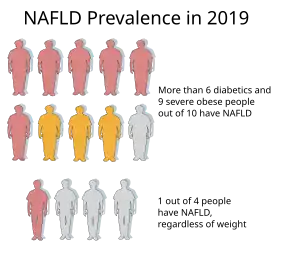 - ↑ Tomic, D; Kemp, WW; Roberts, SK (October 2018). "Nonalcoholic fatty liver disease: current concepts, epidemiology and management strategies". European Journal of Gastroenterology & Hepatology. 30 (10): 1103–15. doi:10.1097/MEG.0000000000001235. PMID 30113367.