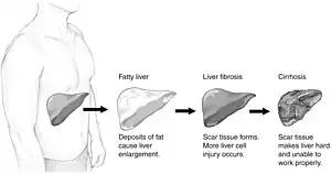 - ↑ Singh S, Allen AM, Wang Z, Prokop LJ, Murad MH, Loomba R (April 2015). "Fibrosis progression in nonalcoholic fatty liver vs nonalcoholic steatohepatitis: a systematic review and meta-analysis of paired-biopsy studies". Clinical Gastroenterology and Hepatology. 13 (4): 643–54.e1–9, quiz e39–40. doi:10.1016/j.cgh.2014.04.014. PMC 4208976. PMID 24768810.
