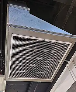 The CDC suggests that, in non-healthcare settings, building ventilation should be brought up to 5 air changes per hour, along with the use of MERV-13 filters, the use of air purifiers (air cleaners), and upper-room Ultraviolet germicidal irradiation (UVGI) to reduce the odds of infection and people coming down with COVID-19.[52][53] The UVGI systems are said to be similar to the UVGI systems used against tuberculosis in the past in healthcare facilities.[54][53] As for ventilation, a survey conducted under 1989 ASHRAE standards showed that, of the buildings constructed in prior years and surveyed, all but one did not meet the recommended 5 ACH.[55]
