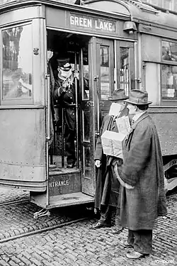 - ↑ Markel H, Lipman HB, Navarro JA, Sloan A, Michalsen JR, Stern AM, Cetron MS (2007-08-08). "Nonpharmaceutical Interventions Implemented by US Cities During the 1918-1919 Influenza Pandemic". JAMA. 298 (6): 644–654. doi:10.1001/jama.298.6.644. ISSN 0098-7484. PMID 17684187.