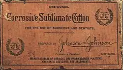 The company sold medicated plasters such as Johnson & Johnson's Black Perfect Taffeta Court Plaster[13] and also manufactured the world's first sterile surgical products, including sutures, absorbent cotton, and gauze.[14] The company published "Modern Methods of Antiseptic Wound Treatment", a guide on how to do sterile surgery using its products, and in 1888, distributed 85,000 copies to doctors and pharmacists across the United States.[15]: 3–99 The manual was translated into three languages and distributed worldwide.[15] The first commercial first aid kit was designed in 1888 to support railroad construction workers, who were often hundreds of miles from medical care.[15] The kits included antiseptic emergency supplies and directions for field use. In 1901, the company published the Handbook of First Aid, a guide on applying first aid.[15]