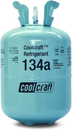 - ↑ "Example image of a 30 lbs R134a bottle". budgetheating.com. Retrieved 26 March 2018.