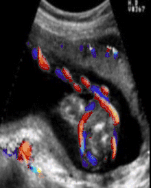 In no study was it possible by ultrasound to distinguish between a loose or a tight cord, although at least 3 attempted to do so. Peregrine[9] concludes that ultrasound diagnosis of nuchal cords will only be useful if doctors are able to do so reliably and predict which of those fetuses are likely to have a problem., However, perinatologists routinely look for umbilical cord issues in monoamniotic twins. Studies have shown an improvement in outcomes where cord entanglement was prenatally identified in these cases. Ultrasound measurement of the velocity of flow in the cord may be useful in the management of twins and chronically growth-retarded fetuses. Of course this depends on the training of the sonographer. To date there are no ultrasound courses which teach the identification of nuchal cord to physicians or technicians. A recent review by Wilson of the American Academy of Ultrasonography Technicians recommends the documentation of umbilical cord issues.[10]