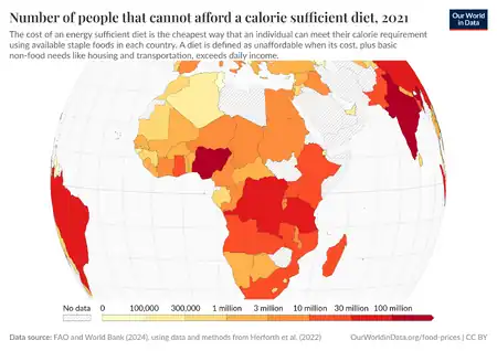 - ↑ "Number of people that cannot afford a calorie sufficient diet". owid. Retrieved 18 July 2025.