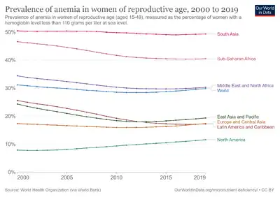 - ↑ “Micronutrient deficiencies” World Health Organization. Accessed March 31, 2017. http://www.who.int/nutrition/topics/ida/en/.