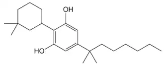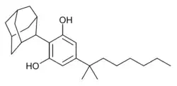 O-1871 is a potent cannabinoid agonist which was invented by Billy R Martin and Raj K Razdan at Organix Inc in 2002. It has a CB1 receptor affinity of 2.0 nM and a CB2 receptor affinity of 0.3 nM.[1] Structurally, O-1871 is a cyclohexylphenol derivative related to CP 47,497,[2] and so is illegal in some jurisdictions where CP 47,497 and its derivatives are banned. However the 3,3-dimethylcyclohexyl substituent of O-1871 can be replaced by various other groups, producing other potent compounds such as the cycloheptyl derivative O-1656 and the 2-adamantyl derivative O-1660, as well as the corresponding 3,5-dichlorophenyl derivative,[3] which are not cyclohexylphenol derivatives.
