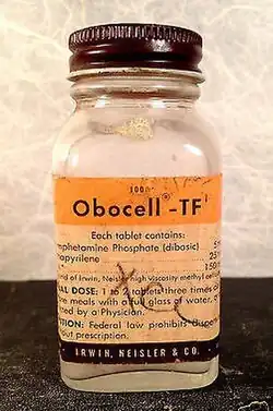 - ↑ "Early 1960s OBOCELL Bottle AMPHETAMINE Jar Narcotic Schedule II Vintage Empty | #1692607921". Worthpoint. Retrieved 2017-07-20.
