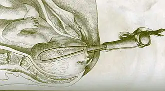 Forceps had a profound influence on obstetrics as it allowed for the speedy delivery of the baby in cases of difficult or obstructed labour. Over the course of the 19th century, many practitioners attempted to redesign the forceps, so much so that the Royal College of Obstetrics and Gynecologists' collection has several hundred examples.[16] In the last decades, however, with the ability to perform a cesarean section relatively safely, and the introduction of the ventouse or vacuum extractor, the use of forceps and training in the technique of its use has sharply declined.