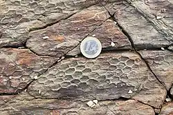 However, this relationship has been contested. The large size (up to 0.5 m (1 ft 8 in)) of some Paleodictyon is unknown in modern Occultammina; the regular hexagonal pattern of Paleodictyon is similarly not represented in Occultammina. The apparent absence of collected sediment particles (known as xenophyae) in graphoglyptid fossils further casts doubt on the possibility.[2]
