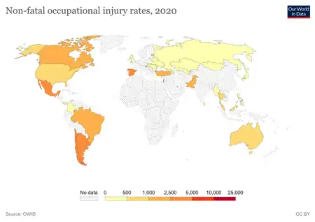 - ↑ Pega, Frank; Nafradi, Balint; Momen, Natalie; Ujita, Yuka; Streicher, Kai; Prüss-Üstün, Annette; Technical Advisory Group (2021). "Global, regional, and national burdens of ischemic heart disease and stroke attributable to exposure to long working hours for 194 countries, 2000–2016: A systematic analysis from the WHO/ILO Joint Estimates of the Work-related Burden of Disease and Injury". Environment International. 154: 106595. doi:10.1016/j.envint.2021.106595. PMC 8204267. PMID 34011457.
