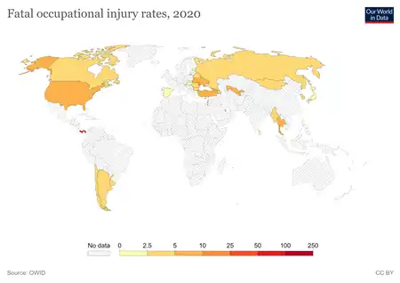 - ↑ "Statistics on safety and health at work". ILOSTAT. Archived from the original on 2023-04-04. Retrieved 2023-04-04. Archived 2024-04-14 at the Wayback Machine