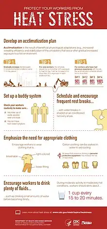 - ↑ "Heat Stress Related Illness | NIOSH | CDC". www.cdc.gov. 18 May 2022. Archived from the original on 13 January 2022. Retrieved 26 July 2023. Archived 13 January 2022 at the Wayback Machine