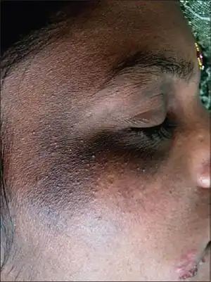 {{cite journal}}: CS1 maint: unflagged free DOI (link) - ↑ Olumide, Y. M., Akinkugbe, A. O., Altraide, D., Mohammed, T., Ahamefule, N., Ayanlowo, S., Onyekonwu, C. and Essen, N. (2008), Complications of chronic use of skin lightening cosmetics. International Journal of Dermatology, 47: 344–353. doi:10.1111/j.1365-4632.2008.02719.x