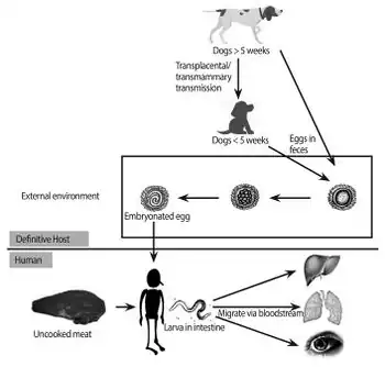 - ↑ 4.0 4.1 4.2 4.3 4.4 4.5 Gupta, Abhishek; Tripathy, Koushik (2025). "Ocular Toxocariasis". StatPearls. StatPearls Publishing. Archived from the original on 2024-04-30. Retrieved 2025-10-31.