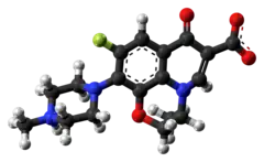 - ↑ Van Bambeke F, Tulkens PM (2009). "Safety profile of the respiratory fluoroquinolone moxifloxacin: comparison with other fluoroquinolones and other antibacterial classes". Drug Saf. 32 (5): 359–78. doi:10.2165/00002018-200932050-00001. PMID 19419232.