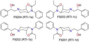 2. Brine GA, Stark PA, Liu Y, Carroll FI, Singh P, Xu H, Rothman RB (April 1995). "Enantiomers of diastereomeric cis-N-[1-(2-hydroxy-2-phenylethyl)- 3-methyl-4-piperidyl]-N-phenylpropanamides: synthesis, X-ray analysis, and biological activities". Journal of Medicinal Chemistry. 38 (9): 1547–1557. doi:10.1021/jm00009a015. PMID 7739013.