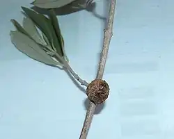 | Twig of olive-tree with a tumour caused by Pseudomonas savastanoi | |