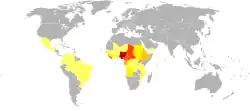 About 15.5 million people are infected with river blindness.[5] Approximately 0.8 million have some amount of loss of vision from the infection.[7][4] Most infections occur in sub-Saharan Africa, although cases have also been reported in Yemen and isolated areas of Central and South America.[1] In 1915, the physician Rodolfo Robles first linked the worm to eye disease.[9] It is listed by the World Health Organization (WHO) as a neglected tropical disease.[10]
