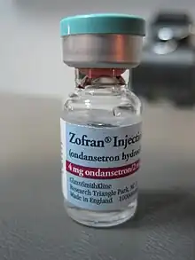 Ondansetron, marketed under the brand name Zofran, is a medication used to prevent nausea and vomiting caused by cancer chemotherapy, radiation therapy, or surgery.[2] It is also effective for treating gastroenteritis.[4][5] It is ineffective for treating vomiting caused by motion sickness.[6] It can be given by mouth or by injection into a muscle or into a vein.[2]