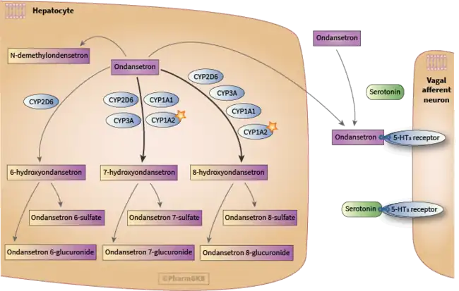 {{cite web}}: CS1 maint: archived copy as title (link) Archived 2012-12-14 at the Wayback Machine - ↑ "Ondansetron Pathway, Pharmacokinetics/Pharmacodynamics". pharmgkb. Retrieved 25 August 2024.