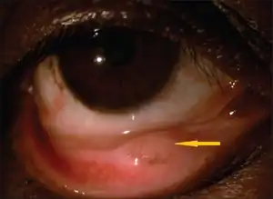 | Granulomatous lesion in the lower palpebral conjunctiva | |