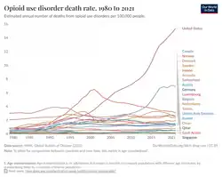 - ↑ Stringfellow EJ, Lim TY, Humphreys K, DiGennaro C, Stafford C, Beaulieu E, et al. (June 24, 2022). "Reducing opioid use disorder and overdose deaths in the United States: A dynamic modeling analysis". Science Advances. 8 (25) eabm8147. Bibcode:2022SciA....8M8147S. doi:10.1126/sciadv.abm8147. PMC 9232111. PMID 35749492.
