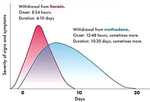 The followings are the general descriptions of duration of opioid withdrawal symptoms:[13]