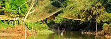The metacercarial stage is infective to humans and other fish-eating mammals, including dogs, cats,[8] rats, and pigs.[18] Fish contain more metacercaria from September to February, before the dry season,[16] and this is when humans are usually infected.[1] Infection is acquired when people ingest raw or undercooked fish.[2] Dishes of raw fish are common in the cuisine of Laos and the cuisine of Thailand: koi pla, raw fish in spicy salad larb pla,[13] salted semifermented fish dishes called pla ra,[1] pla som[13] and som fak.[12] The natural definitive host is the leopard cat (Prionailurus bengalensis).[1] The young adult worm escapes from the metacercarial cyst in the upper small intestine and then migrates through the ampulla of Vater into the biliary tree, where it develops to sexual maturity over 4–6 weeks, thus completing the lifecycle.[2]