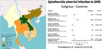 - ↑ Sota, Pornphutthachat; Andityas, Morsid; Kotepui, Manas; Sripa, Banchob (8 May 2024). "Prevalence estimates of Opisthorchis viverrini and Clonorchis sinensis infection in the Greater Mekong subregion: a systematic review and meta-analysis". Infectious Diseases of Poverty. 13 (1): 33. doi:10.1186/s40249-024-01201-8. ISSN 2049-9957. Retrieved 23 November 2024.