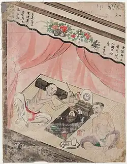 Recreational use of opium was part of a civilized and mannered ritual, akin to an East Asian tea ceremony, prior to the extensive prohibitions that came later.[50] In places of gathering, often tea shops, or a person's home servings of opium were offered as a form of greeting and politeness. Often served with tea (in China) and with specific and fine utensils and beautifully carved wooden pipes. The wealthier the smoker, the finer and more expensive material used in ceremony.[50] The image of seedy underground, destitute smokers were often generated by anti-opium narratives and became a more accurate image of opium use following the effects of large scale opium prohibition in the 1880s.[50]