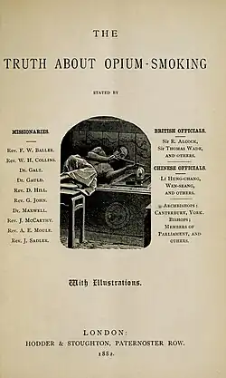 Scientific evidence of the pernicious nature of opium use was largely undocumented in the 1890s, when Protestant missionaries in China decided to strengthen their opposition to the trade by compiling data which would demonstrate the harm the drug did. Faced with the problem that many Chinese associated Christianity with opium, partly due to the arrival of early Protestant missionaries on opium clippers, at the 1890 Shanghai Missionary Conference, they agreed to establish the Permanent Committee for the Promotion of Anti-Opium Societies in an attempt to overcome this problem and to arouse public opinion against the opium trade. The members of the committee were John Glasgow Kerr, MD, American Presbyterian Mission in Guangzhou (Canton); B.C. Atterbury, MD, American Presbyterian Mission in Beijing (Peking); Archdeacon Arthur E. Moule, Church Missionary Society in Shanghai; Henry Whitney, MD, American Board of Commissioners for foreign Missions in Fuzhou; the Rev. Samuel Clarke, China Inland Mission in Guiyang; the Rev. Arthur Gostick Shorrock, English Baptist Mission in Taiyuan; and the Rev. Griffith John, London Mission Society in Hankou.[77] These missionaries were generally outraged over the British government's Royal Commission on Opium visiting India but not China. Accordingly, the missionaries first organized the Anti-Opium League in China among their colleagues in every mission station in China. American missionary Hampden Coit DuBose acted as first president. This organization, which had elected national officers and held an annual national meeting, was instrumental in gathering data from every Western-trained medical doctor in China, which was then published as William Hector Park compiled Opinions of Over 100 Physicians on the Use of Opium in China (Shanghai: American Presbyterian Mission Press, 1899). The vast majority of these medical doctors were missionaries; the survey also included doctors who were in private practices, particularly in Shanghai and Hong Kong, as well as Chinese who had been trained in medical schools in Western countries. In England, the home director of the China Inland Mission, Benjamin Broomhall, was an active opponent of the opium trade, writing two books to promote the banning of opium smoking: The Truth about Opium Smoking and The Chinese Opium Smoker. In 1888, Broomhall formed and became secretary of the Christian Union for the Severance of the British Empire with the Opium Traffic and editor of its periodical, National Righteousness. He lobbied the British Parliament to stop the opium trade. He and James Laidlaw Maxwell appealed to the London Missionary Conference of 1888 and the Edinburgh Missionary Conference of 1910 to condemn the continuation of the trade. When Broomhall was dying, his son Marshall read to him from The Times the welcome news that an agreement had been signed ensuring the end of the opium trade within two years.