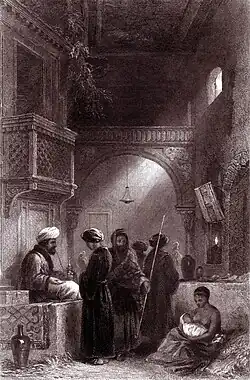 Soldiers returning home from the Crusades in the 11th to 13th century brought opium with them.[25] Opium is said to have been used for recreational purposes from the 14th century onwards in Muslim societies. Ottoman and European testimonies confirm that from the 16th to the 19th centuries Anatolian opium was eaten in Constantinople as much as it was exported to Europe.[44] In 1573, for instance, a Venetian visitor to the Ottoman Empire observed many of the Turkish natives of Constantinople regularly drank a "certain black water made with opium" that makes them feel good, but to which they become so addicted, if they try to go without, they will "quickly die".[45] From drinking it, dervishes claimed the drugs bestowed them with visionary glimpses of future happiness.[46] Indeed, the Ottoman Empire supplied the West with opium long before China and India.[47]