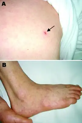 - ↑ Rapini, Ronald P.; Bolognia, Jean L.; Jorizzo, Joseph L. (2007). Dermatology: 2-Volume Set. St. Louis: Mosby. p. 1130. ISBN 978-1-4160-2999-1.