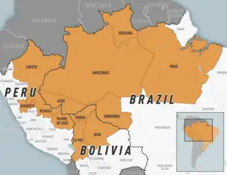 | Areas of Bolivia, Brazil, and Peru with outbreaks of Oropouche fever[2] | |
