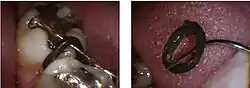Spacers are either circular rubber bands about a centimeter in diameter placed between top and bottom molars; there may be 1-12 spacers applied or small metal spring clips (spring separators) that push the molars apart. The spacers stay between the teeth for one week and move the teeth apart slowly until they are far apart enough so that orthodontists can fit a tooth brace or molar band in between them or fit an expander with rubber rings or other appliances.