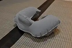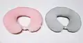 - Neck pillow or travel pillow: Pillow shaped like a horseshoe to fit around the neck, mostly used by travelers to keep their necks straight while sleeping sitting up on board planes or other vehicles.