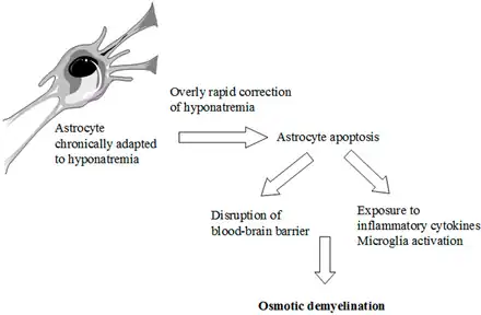 - ↑ Kleinschmidt-DeMasters BK, Norenberg MD (March 1981). "Rapid correction of hyponatremia causes demyelination: relation to central pontine myelinolysis". Science. 211 (4486): 1068–1070. Bibcode:1981Sci...211.1068K. doi:10.1126/science.7466381. PMID 7466381.