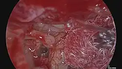 There are various methods to treat otosclerosis. However the method of choice is a procedure known as stapedectomy.[23] Early attempts at hearing restoration via the simple freeing of the stapes from its sclerotic attachments to the oval window were met with temporary improvement in hearing, but the conductive hearing loss would almost always recur. A stapedectomy consists of removing a portion of the sclerotic stapes footplate and replacing it with an implant that is secured to the incus. This procedure restores continuity of ossicular movement and allows transmission of sound waves from the eardrum to the inner ear. A modern variant of this surgery called a stapedotomy, is performed by drilling a small hole in the stapes footplate with a micro-drill or a laser, and the insertion of a piston-like prothesis. The success rate of either surgery depends greatly on the skill and the familiarity with the procedure of the surgeon.[12] However, comparisons have shown stapedotomy to yield results at least as good as stapedectomy, with fewer complications, and thus stapedotomy is preferred in normal circumstances.[24] Recently, Endoscopic stapedotomy has been gaining popularity since its first description by Professor Tarabichi in 1999.[25] The endsocope provides much better view of the stapes footplate without removal of bone to access that structure.[26]
