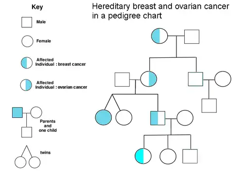 {{cite book}}:|work=ignored (help) - ↑ "Genetics of Breast and Ovarian Cancer (PDQ®)". National Cancer Institute. 2 October 2014. Archived from the original on 22 October 2014. Retrieved 27 October 2014. Archived 22 October 2014 at the Wayback Machine