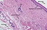 | Dermoid cyst | Well-differentiated components from at least two germ layers (ectoderm, mesoderm and/or endoderm).[20] |