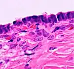 | Cystadenoma | Serous cystadenoma | Cyst lining consisting of a simple epithelium, whose cells may be either:[19]