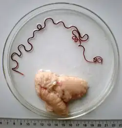 Ovary of a marine fish and its parasite, the nematode Philometra fasciati