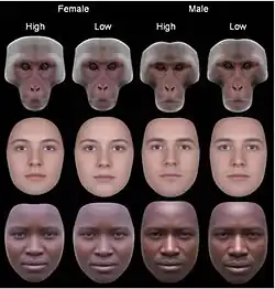 - ↑ Scott, Isabel M.; Clark, Andrew P.; Josephson, Steven C.; Boyette, Adam H.; Cuthill, Innes C.; Fried, Ruby L.; Gibson, Mhairi A.; Hewlett, Barry S.; Jamieson, Mark (2014). "Human preferences for sexually dimorphic faces may be evolutionarily novel". Proceedings of the National Academy of Sciences. 111 (40): 14388–14393. Bibcode:2014PNAS..11114388S. doi:10.1073/pnas.1409643111. PMC 4210032. PMID 25246593.