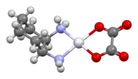 The compound features a square planar platinum(II) center. In contrast to cisplatin and carboplatin, oxaliplatin features the bidentate ligand 1,2-diaminocyclohexane in place of the two monodentate ammine ligands. It also features a bidentate oxalate group.[1]